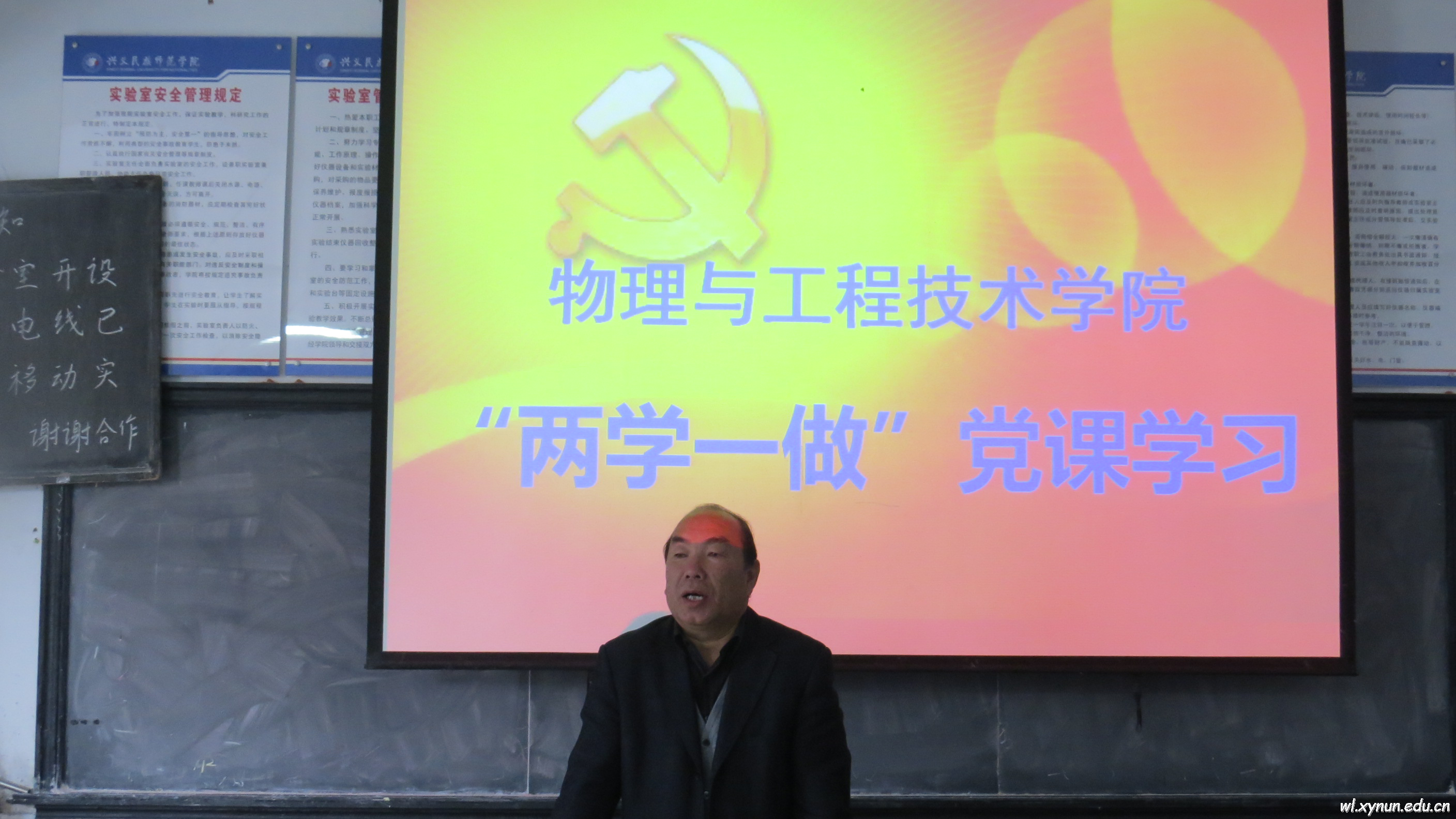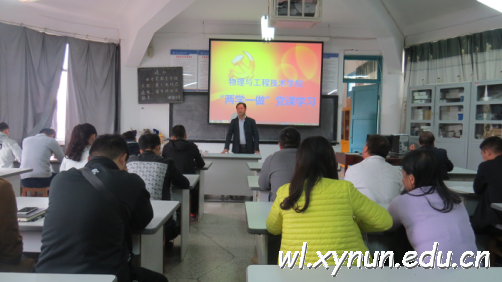我院党总支组织全院师生党员,于2016年10月19日下午2:30在1403教室开展“两学一做”专题党课学习。学校党委委员副校长彭光明教授向全院师生党员作了“认真开展‘两学一做’学习教育活动,争做合格共产党员”的讲座。彭校长讲解了开展“两学一做”学习教育活动的意义,强调了共产党员要结合“两学一做”学习教育活动,树立大局意识,认真贯彻中央、省及州的方针、政策,时刻与党中央保持一致,与学校党委步调一致,努力将学校、学院建设地更好;对物理与工程技术学院的全体党员提出了学习要求,党员要把理论学习落实到实际中来,大胆创新教学方法、内容和体系,结合学校、学院的发展,以板报、网络、QQ等多种形式大力宣传“两学一做”学习教育活动,调动党员积极性,在工作、学习、生活中起模范带头作用,努力树立标杆。随后,党总支书记王文宝同志向全院师生党员作了 “培育社会主义核心价值观,铸牢兴国之魂”的讲座。王书记讲解了中华民族复兴的战略要务。100多年来,中华民族在一次次探索与失败的磨砺中逐步重构起了自己新的精神价值体系,要在复杂多变的国际环境中站稳脚跟,要在日新月异的国内发展中凝神聚气,要在新的建设征程中蹄急而步稳,必须高扬精神上的先进旗帜,奏响思想文化上的主旋律,建设好我们自己的核心价值观。