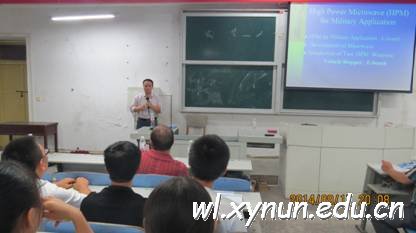 2014年9月17晚7:30,在6401教室,中国工程物理研究院应用电子学研究所研究员、西南科技大学兼职博士生导师李正红教授,到我院进行了《高功率微波技术及应用》的学术报告,报告具有很强的学术性、专业性、前沿性,我院师生受益匪浅。同时西南科技大学理学院副院长周自刚教授为我院学生介绍了西南科技大学的情况;西南科技大学理学院的办公室主任为同学们介绍了研究生招生政策与奖勤助贷体系。通过这次活动扩展了我院师生的知识,激发了学生考研的兴趣。