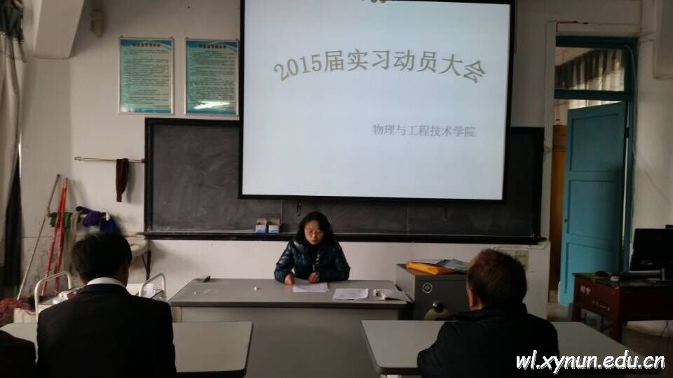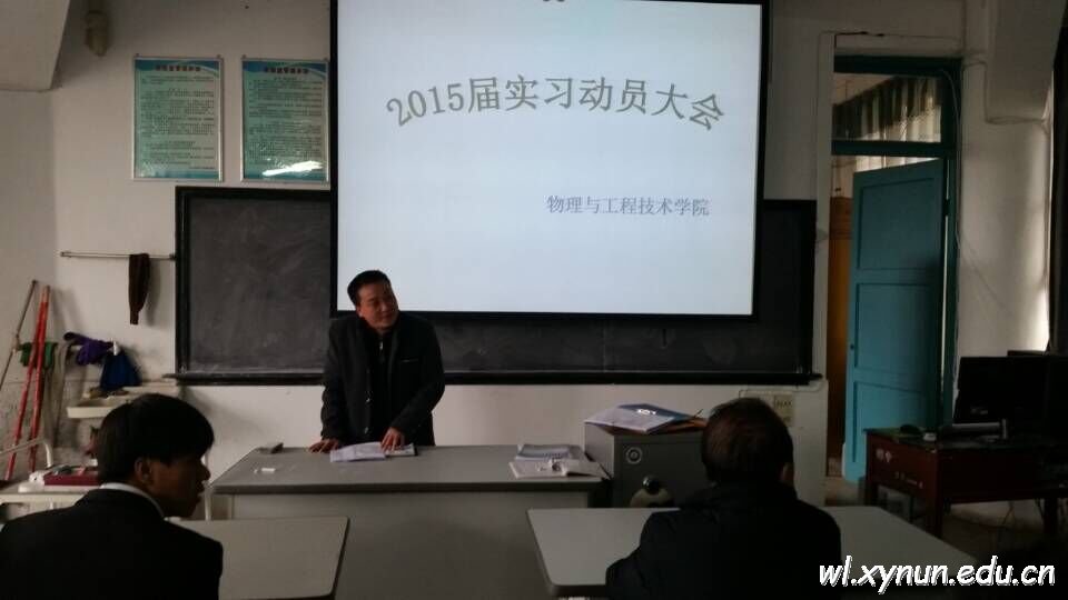 为增强毕业生的实习意识,提高毕业生的就业质量,切实做好2011级本科毕业生的实习工作,物理与工程技术学院于3月6日下午4:30在1403教室隆重举行了实习动员大会。学院党总支书记王文宝书记出席会议,会议由周丽萍老师主持,参加会议的有实习指导教师及2011级物理本科班的全体学生。