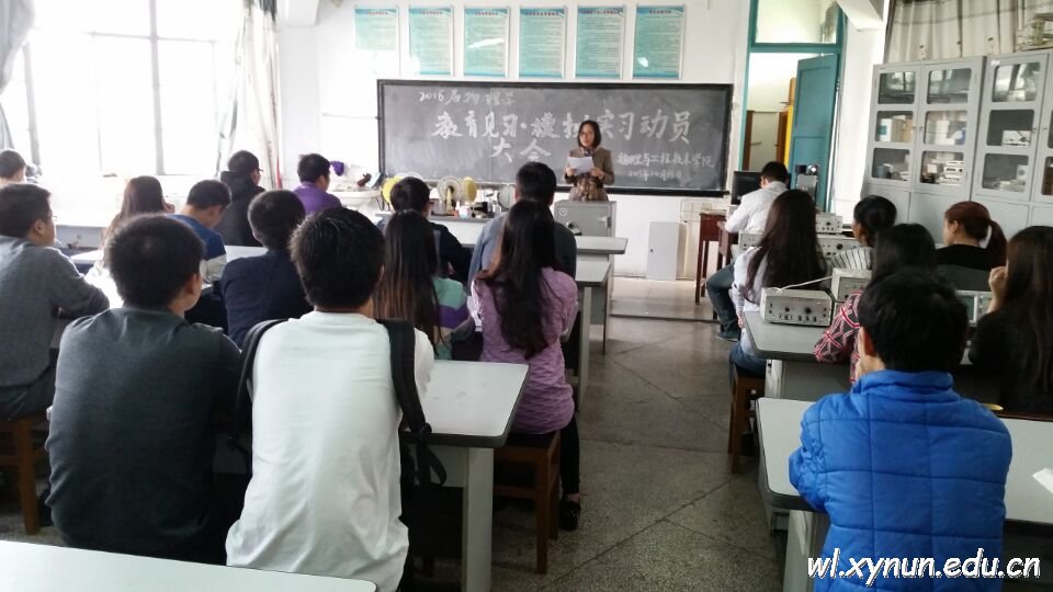 其次是物理学教研室主任张娟利教师宣读《物理与工程技术学院2016届物理学教育见习实施方案》。大家认真听讲,做好记录,对今后的教育见习和模拟实习工作都有了一定了解。