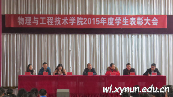 物理与工程技术学院于2015年12月25日,在学校大礼堂举行了2015年度学生表彰大会,我院的王文宝书记,毛自娟、周波、许江勇、王菊、陈旭、王传坤老师以及学院全体师生参与了的表彰大会。![]() ![]() ![]() ![]()