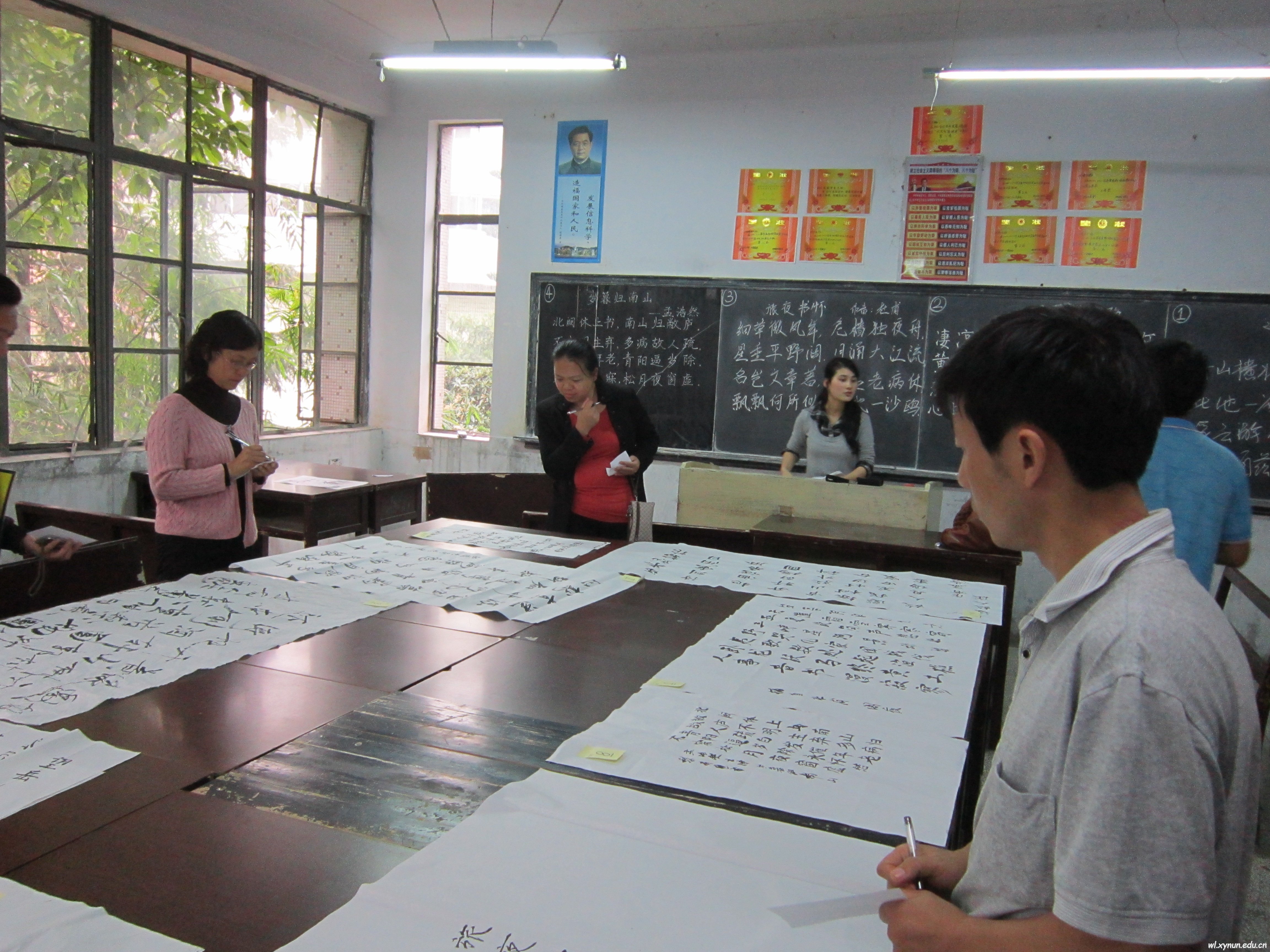 为了加强学生的教师职业技能训练,提升同学们的职业素养,2012年10月26日下午由物理系团总支、学生会举办的“三笔一画”比赛在1201教室和1205教室以及1106教室进行。这次比赛分为预赛和决赛两轮进行,在预赛中各班同学都积极上交了作品,正式决赛时,选手们个个精神饱满,积极踊跃,大家在规定的时间内完成了比赛作品,一幅幅钢笔字、毛笔字、粉笔字作品展现在老师们和同学们的眼前。随后由系上5名教师评委对参赛作品进行了评比打分。此次评比评出:钢笔字:第一名(王江),第二名(韦朝印),第三名(丁海梅)。毛笔字:第一名(陈青山),第二名(杨义),第三名(支星)。粉笔字:第一名(陈青山),第二名(卢光顶)第三名(杨义)。绘画:第二名(陈阳),第三名(罗双玲)。另外此次比赛还设置了优秀奖、组织奖。这次活动,锻炼了同学们的书写能力,为同学们展现自我搭建了平台。