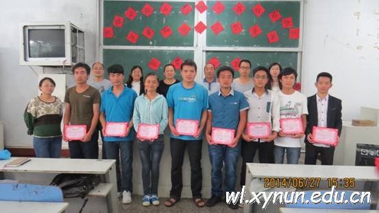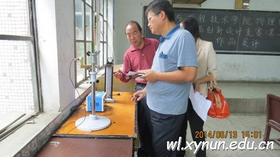 为激发大学生对物理实验的兴趣,培养大学生的创新意识、创新精神和创新能力,运用所学的理论知识和技能去解决实际问题的能力,提高学生的综合实践能力及综合素质,物理与工程技术学院于2014年4月至2014 年7月举办了物理实验及科技作品创新设计竞赛(第二届)。共有38个小组参赛,经过评审,按照竞赛主题评选出一等奖、二等奖、三等奖作品,其中物理实验类一等奖1组、二等奖3组、三等奖6组;教具制作类一等奖1组、二等奖2组、三等奖1组;电子制作类一等奖1组、二等奖1组、三等奖2组。
