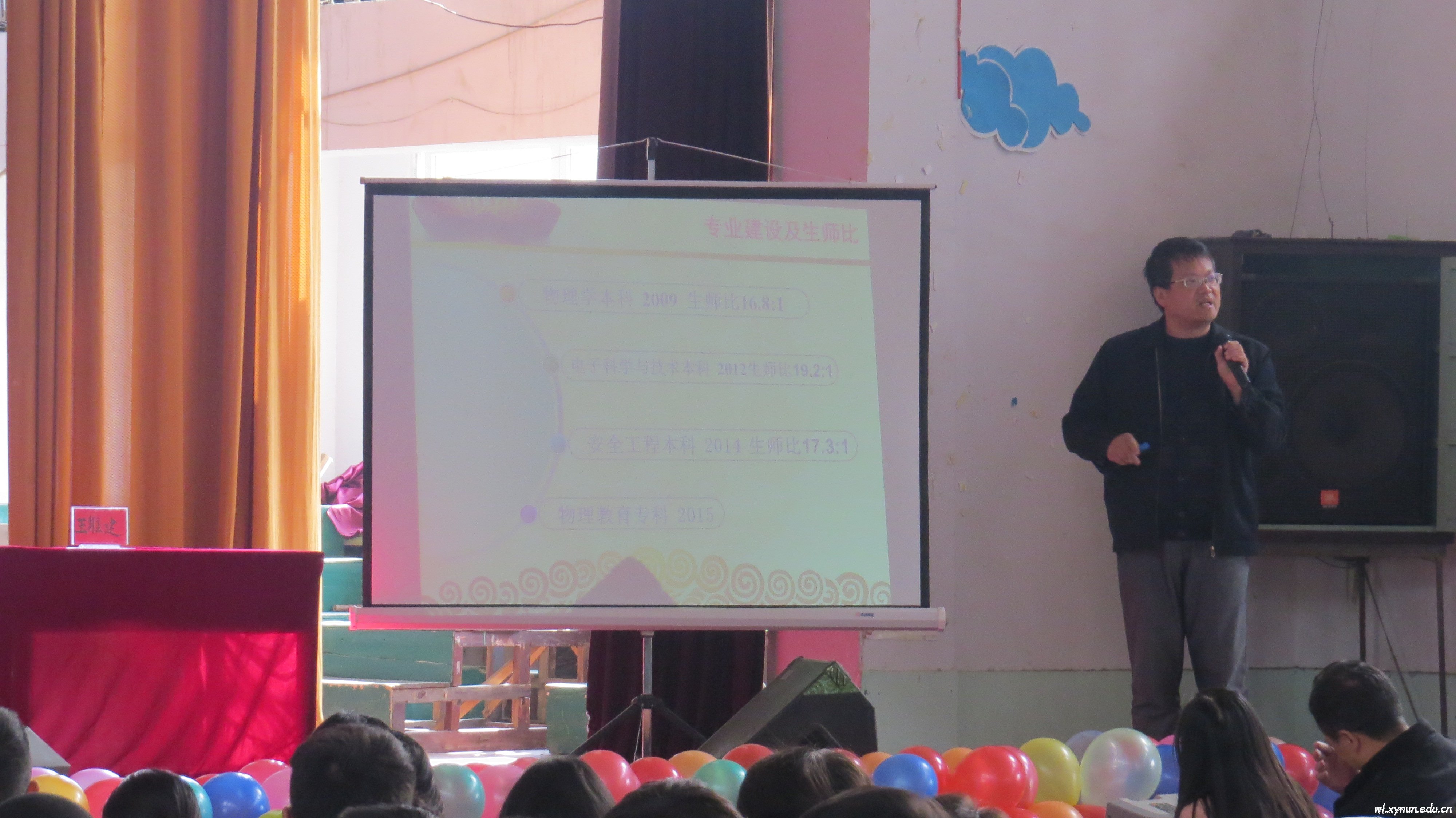 物理与工程技术学院于2015年11月29日在学校大礼堂举行了迎评工作培训会。参会的有兴义民族师范学院学生处唐春芳老师,物理与工程技术学院院长李川,党总支书记王文宝,教务科副科长许江勇老师,学生科副科长王菊老师,各教研室主任以及全院全体师生。 培训会分为三个议程,第一项,由学校学生处唐春芳老师组织学习相关评估知识。第二项,李川院长向全院师生介绍我院的整体概况,总结了我院的特色及亮点。第三项,根据我院设计提出的评估访谈相关问题,由学院院长、教务科、学生科负责人、各教研室主任分别进行培训解答。最后,由王文宝书记对本次培训会作出总结,要求全院师生强化责任意识、大局意识,增强责任感、荣誉感,弘扬正能量,充分展现我院师生良好的精神风貌,以主人翁的精神共同积极迎接评估。