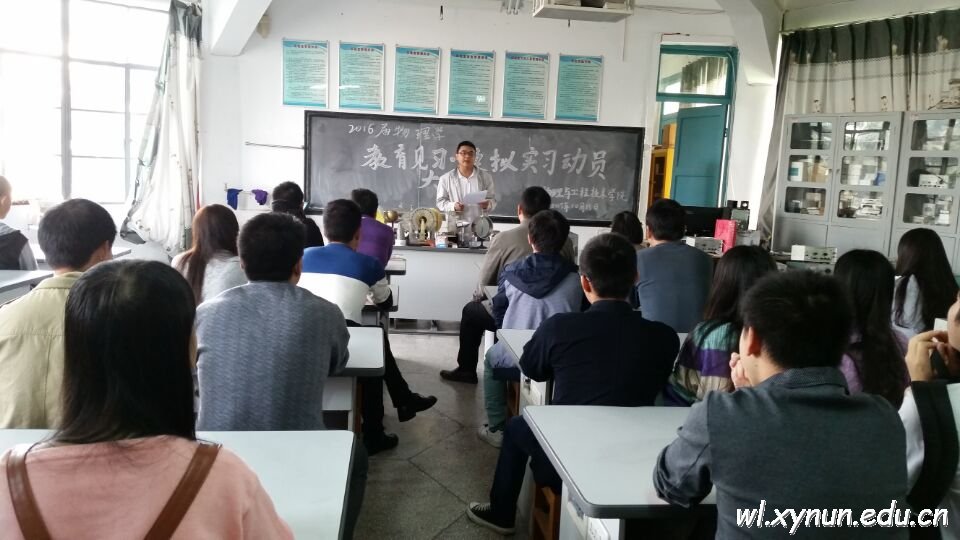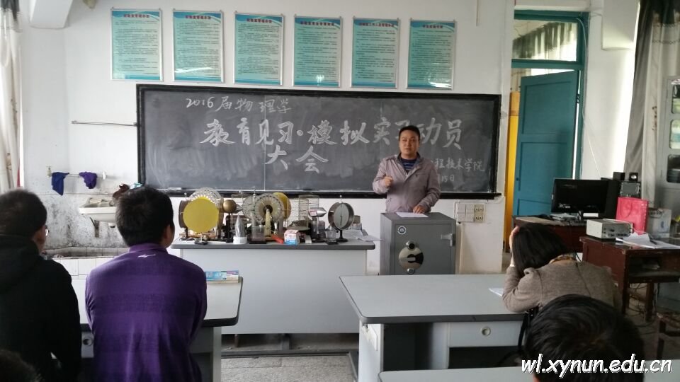 其次是物理学教研室主任张娟利教师宣读《物理与工程技术学院2016届物理学教育见习实施方案》。大家认真听讲,做好记录,对今后的教育见习和模拟实习工作都有了一定了解。