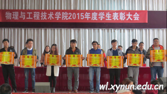 物理与工程技术学院于2015年12月25日,在学校大礼堂举行了2015年度学生表彰大会,我院的王文宝书记,毛自娟、周波、许江勇、王菊、陈旭、王传坤老师以及学院全体师生参与了的表彰大会。![]() ![]() ![]() ![]()