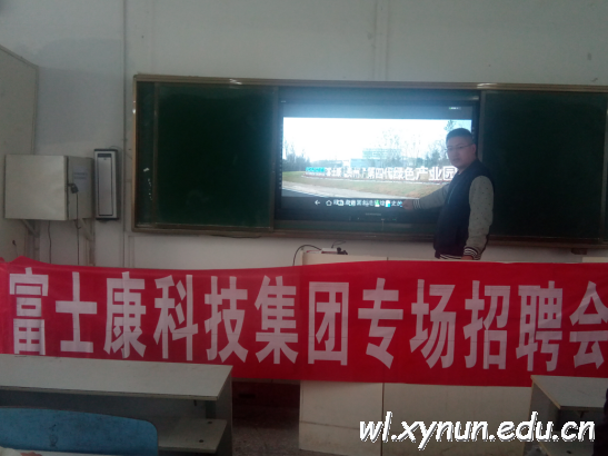 2017年3月29日,贵安新区富士康科技集团招募团一行4人到我校6201教室举办专场招聘会。 上午10时,大约有120名同学们已经入场,播放贵安新区富士康科技集团宣传片。然后由高振宇招聘主管对此次招聘作了详细、精彩的介绍,并现场回答了同学的疑问。之后,愿意前往富士康就业的毕业生参加了笔试,笔试通过的下午还参加了面试。最后,此次招聘会共签约了电子科学与技术专业学生18名,计算机专业学生2名,共计20名。 据悉,富士康科技集团在2016年位居全球企业500强第25名。物理与工程技术学院已于2016年3月到贵安新区富士康代表学校与其签署了实习基地合作协议。 此次招聘会取得了圆满成功。双方均表示,还将继续在下一步的学生实习、实训这块加大合作,涉及到物理学院电子科学与技术、安全工程等专业学生。 ![]() 同学们观看贵安新区富士康宣传片 ![]() 高振宇招聘主管介绍此次招聘情况 ![]() 同学们认真倾听招聘情况介绍