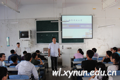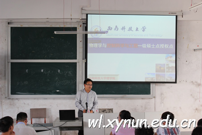 2015年10月29日,我院邀请西南科技大学理学院周自刚副院长及理学院学生工作办公室的员朝乐老师到我校,为我院13级、14级、15级三个专业的本科班学生介绍了当前的考研形势、考研流程、注意事项及西南科技大学的招考情况,并针对考研的事情与同学们进行了交流和互动;同时邀请我校学生积极参加西南科技大学组织的夏令营活动,并由我院今年参加西南科技大学夏令营活动的同学为同学们进行了经验介绍。